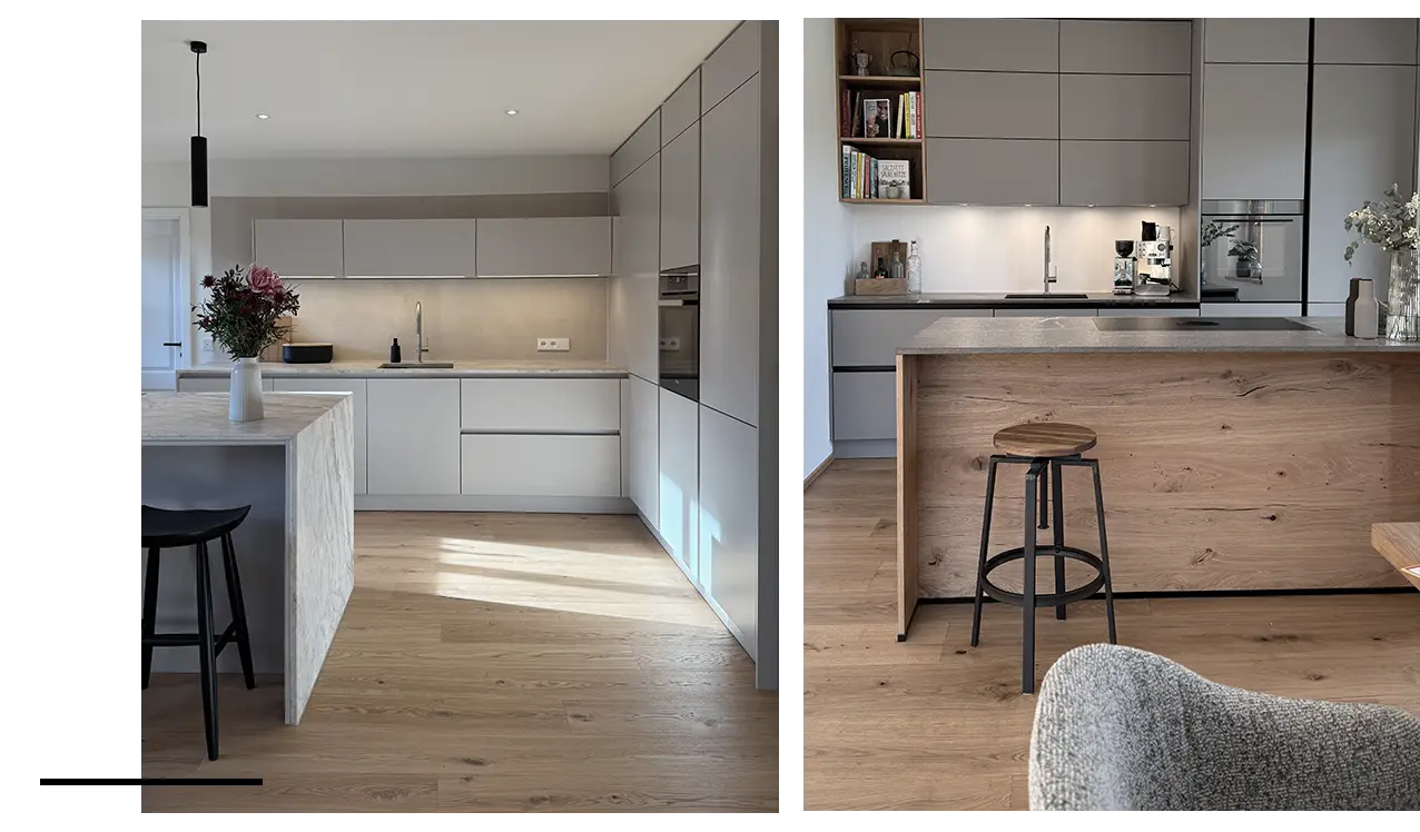 Der Realisierungsprozess startet mit einem 30- bis 45-minütigen Beratungsgespräch, in dem wir Ihre Ideen und Wünsche erfassen, um eine klare Vision Ihrer Traumküche zu entwickeln.