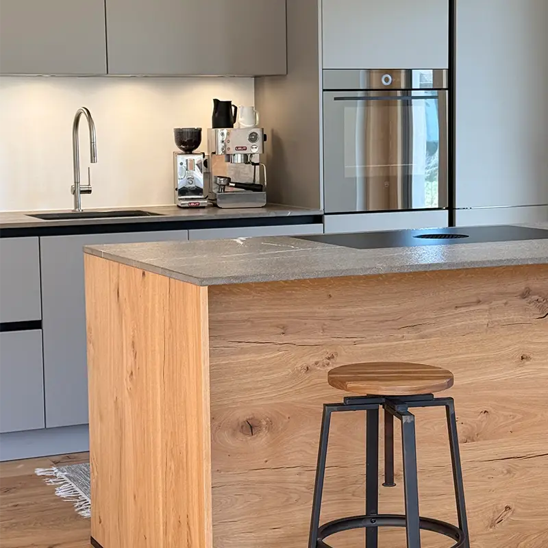 In unserem Küchenstudio in Übersee am Chiemsee planen und realisieren wir individuelle Küchen für Kunden in ganz Südostbayern – von Rosenheim über den Chiemgau bis Berchtesgaden. Jede beige Küche wird maßgefertigt und exakt auf Raum, Alltag und persönliche Wünsche abgestimmt.